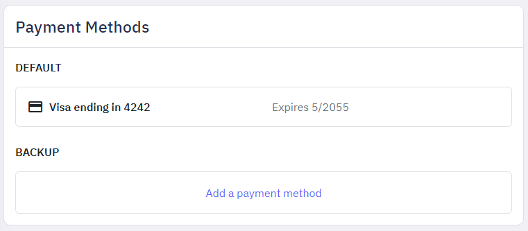 Delete Payment Method: Remove existing payment methods that you no longer use or want to keep on file.